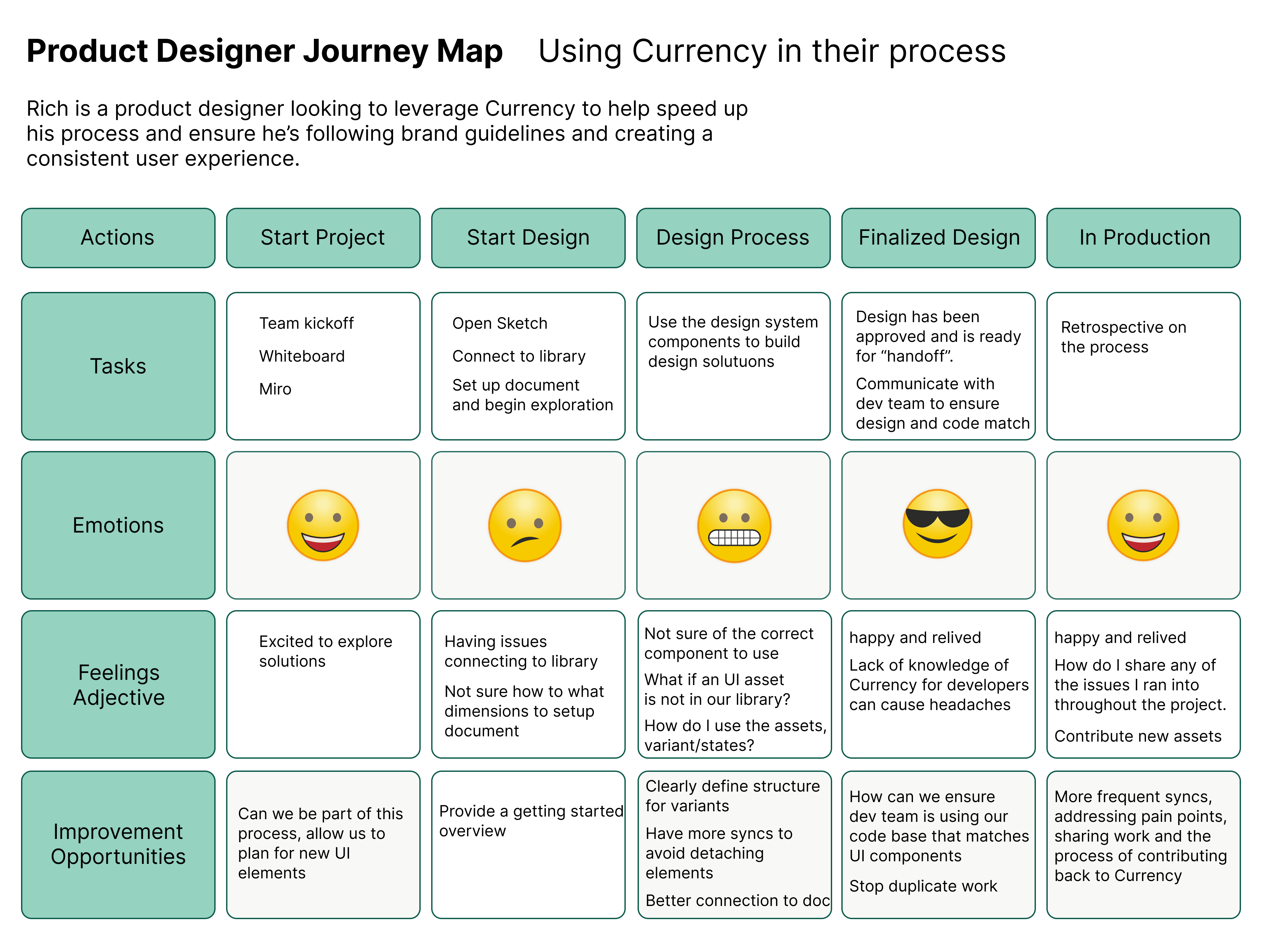 Subsequently, the gathered information was synthesized and utilized in collaborative journey mapping sessions. Visual representation of the end-to-end user experience facilitated the identification of pain points and bottlenecks in their workflows. The process then transitioned into iterative improvement, where solutions were prioritized based on their impact, and collaborative efforts with the design and development teams were undertaken to address the identified challenges. Continuous feedback mechanisms and regular updates to the journey map ensured that the improvement process remained adaptive and user-centric. This methodical approach allowed for a deep exploration of user experiences, fostering collaborative solutions and ongoing enhancements to the design and development workflow.