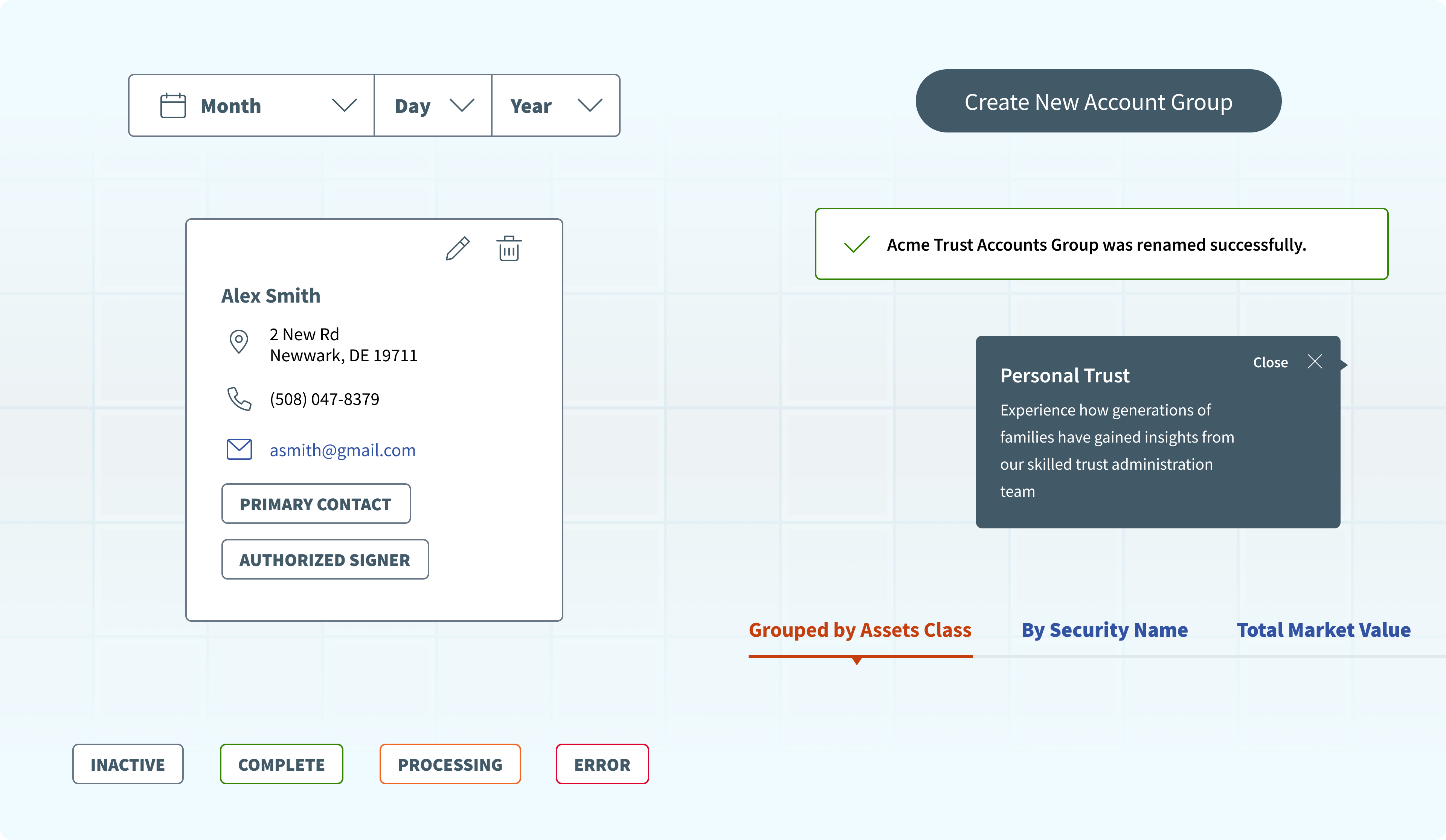 Currency's design system functions as a scalable and dynamic framework meticulously designed to empower designers, engineers, and project teams, fostering both speed and innovation. What sets it apart is its unique ability to serve two distinct products, M&T and Wilmington Trust, each with its look and feel.