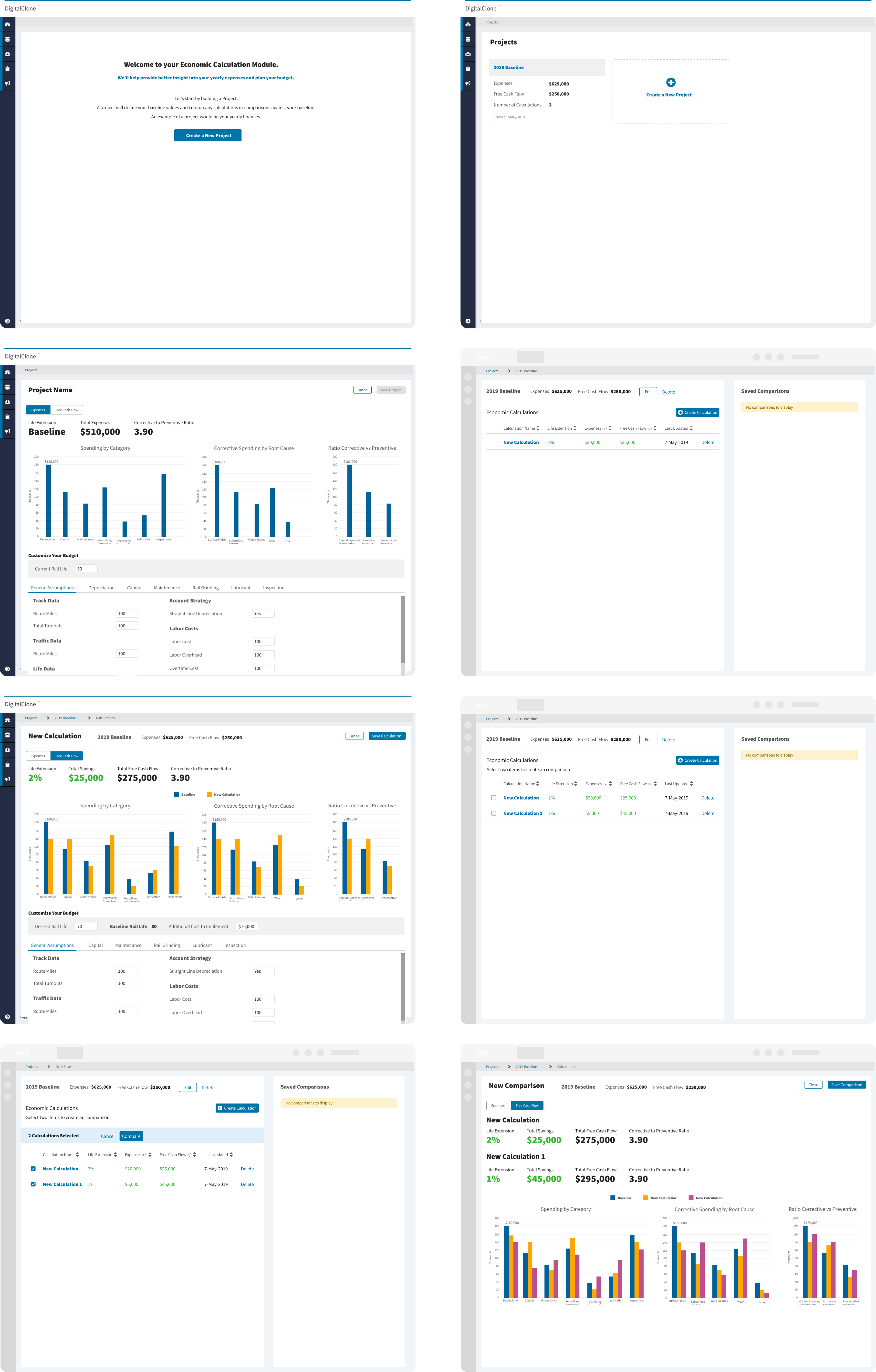 In my capacity as a Designer/Developer and Project Manager, I established close collaboration with the Maintenance Manager and a Customer Success Manager to deliver a comprehensive solution. Commencing with a thorough customer interview, I utilized journey mapping to gain insights into the existing workflow within the Excel document. Employing card sorting techniques, I organized inputs efficiently in the UI. Through an iterative process, I presented low-fidelity wireframes to test user hierarchy and flow, ensuring a seamless experience for both first-time users and those comparing different calculations.