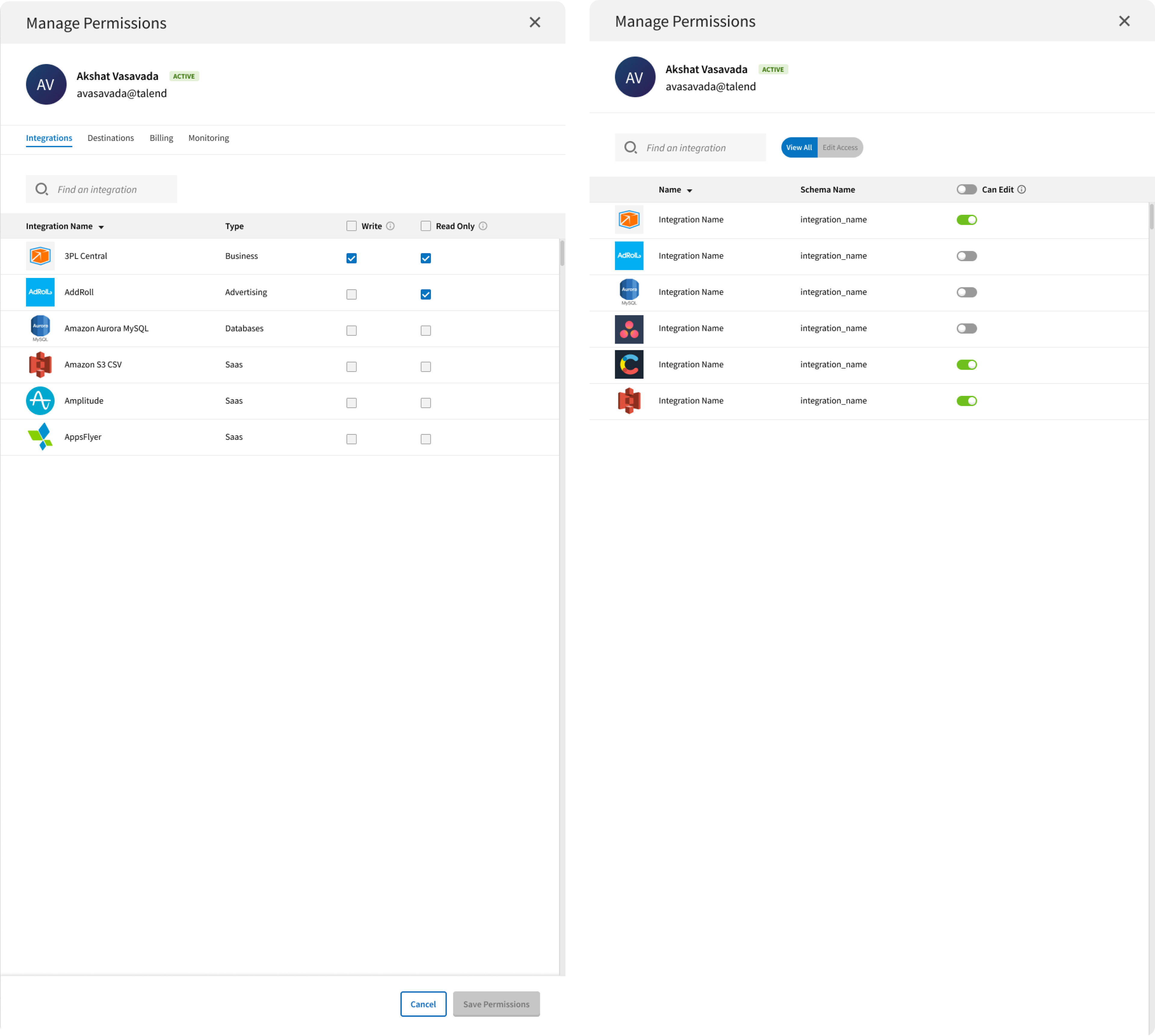 To address the need for flexible integration permissions, we devised a solution empowering admin users to assign distinct permissions, either granting full control or limiting access to a read-only view. We meticulously tested two implementations to determine the most user-friendly approach.