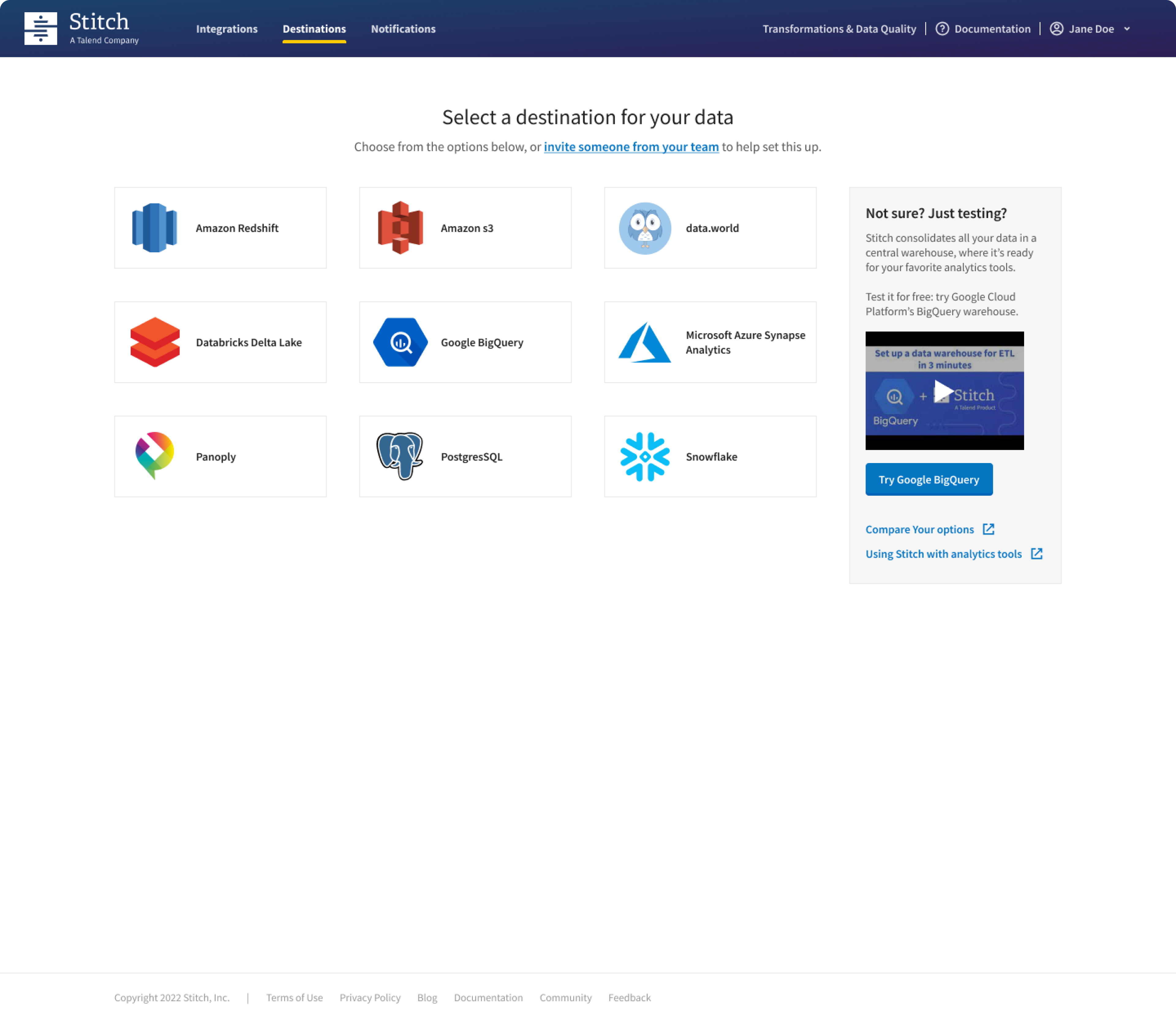The process of setting up destinations within Stitch has been identified as a significant challenge, posing hurdles for users. A considerable number of users either lack awareness regarding the necessity of defining a destination for their data migration or encounter difficulties accessing the required information crucial for completing their data warehouse connection. This issue highlights the need for a more streamlined and user-friendly destination setup process, incorporating clear guidance, intuitive interfaces, and informative resources to empower users in efficiently configuring their data destinations. Addressing these pain points will not only enhance user understanding but also contribute to a smoother and more effective onboarding experience.