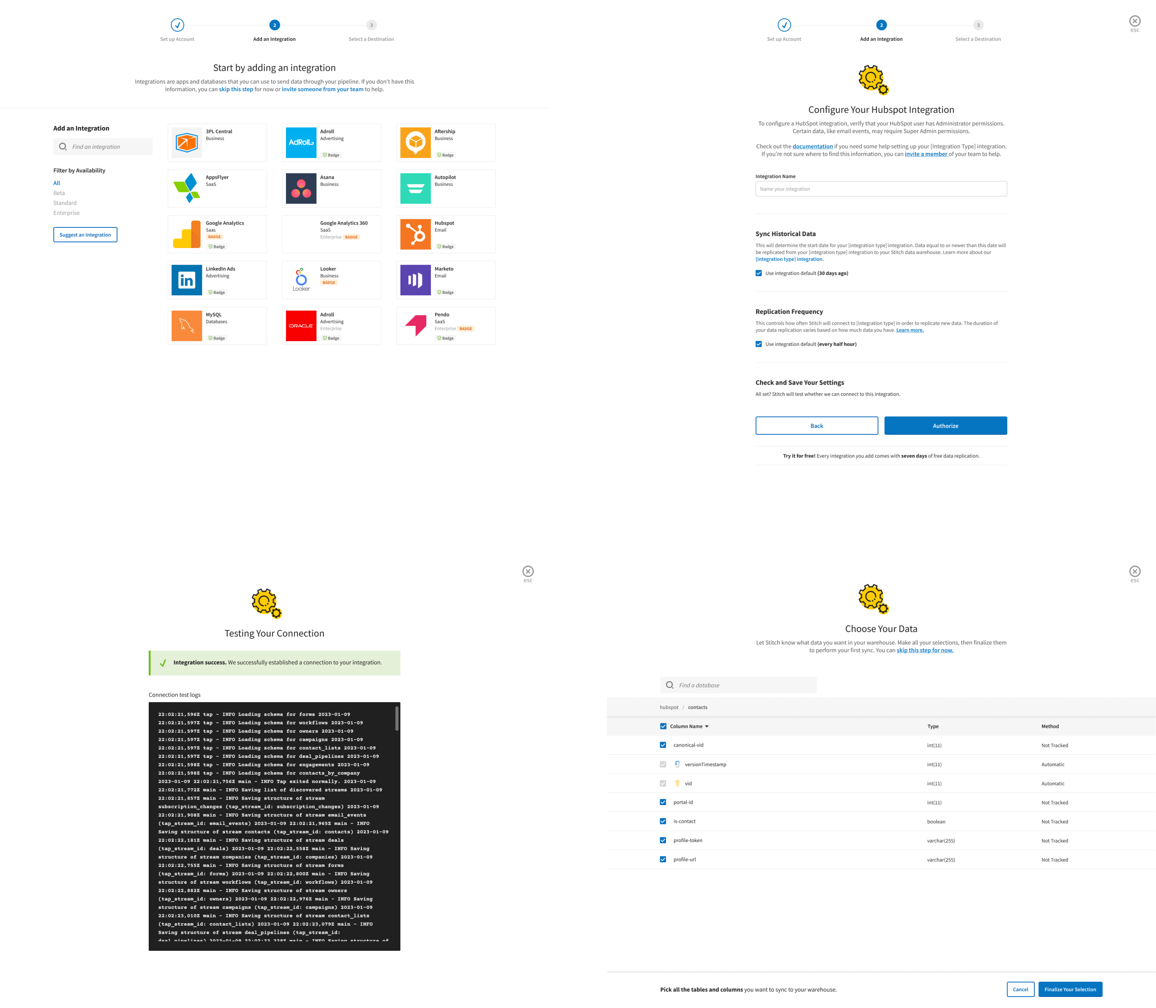 The current modal-led journey, focusing on users finding their integration and choosing data replication preferences, lacks comprehensive explanations regarding data synchronization specifics and the cost implications of replication frequency based on the chosen plan. Furthermore, variations in tables and columns across integration versions may introduce confusion about what data to replicate to the data warehouse. A more professional and user-centric approach involves refining the modal-led journey to provide detailed guidance on data synchronization, cost considerations, and handling version-specific variations in a transparent manner to ensure a smoother and clearer user experience.
