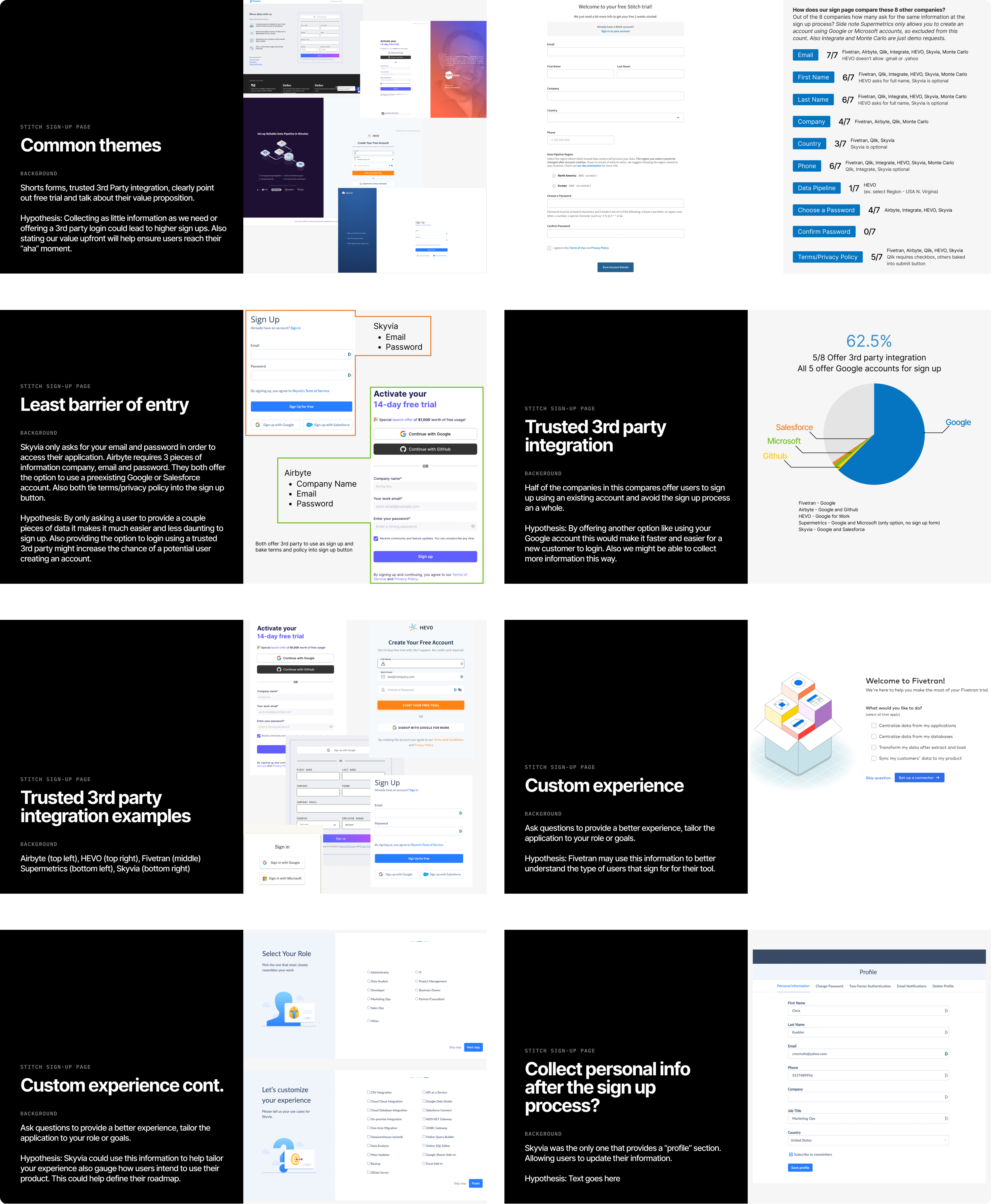 Conducting a comprehensive competitive analysis of the signup page has revealed significant opportunities for improvement. Notably, there is identifiable wasted whitespace that could be strategically utilized to effectively communicate the unique value proposition to users. This presents a chance to transform the onboarding experience into one that is not only informative but also engaging and supportive.
