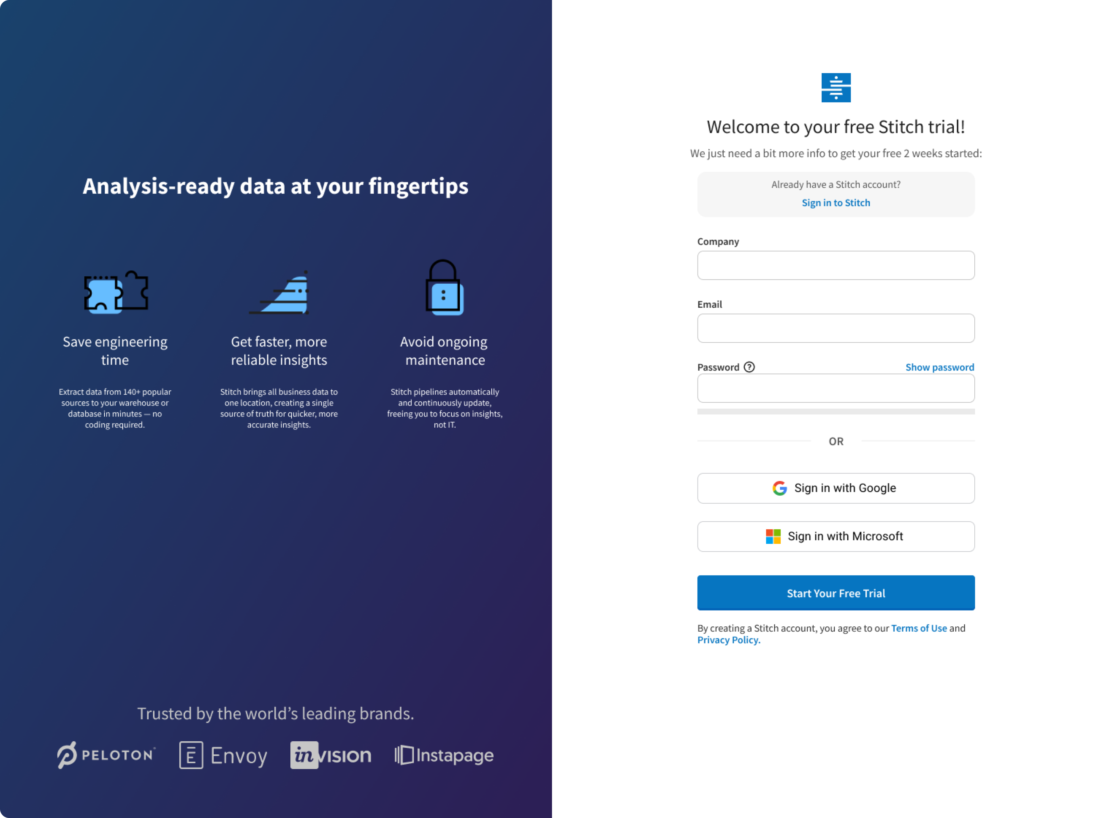 Revamped the onboarding process by replacing the traditional modal-led journey with a personalized and inviting experience. Implemented a warm greeting accompanied by visual cues that guide users directly to accessing their value promptly upon entering the application. This strategic adjustment not only expedites the user's entry into the app but also acclimates them to the distinct look and feel of Stitch from the outset.