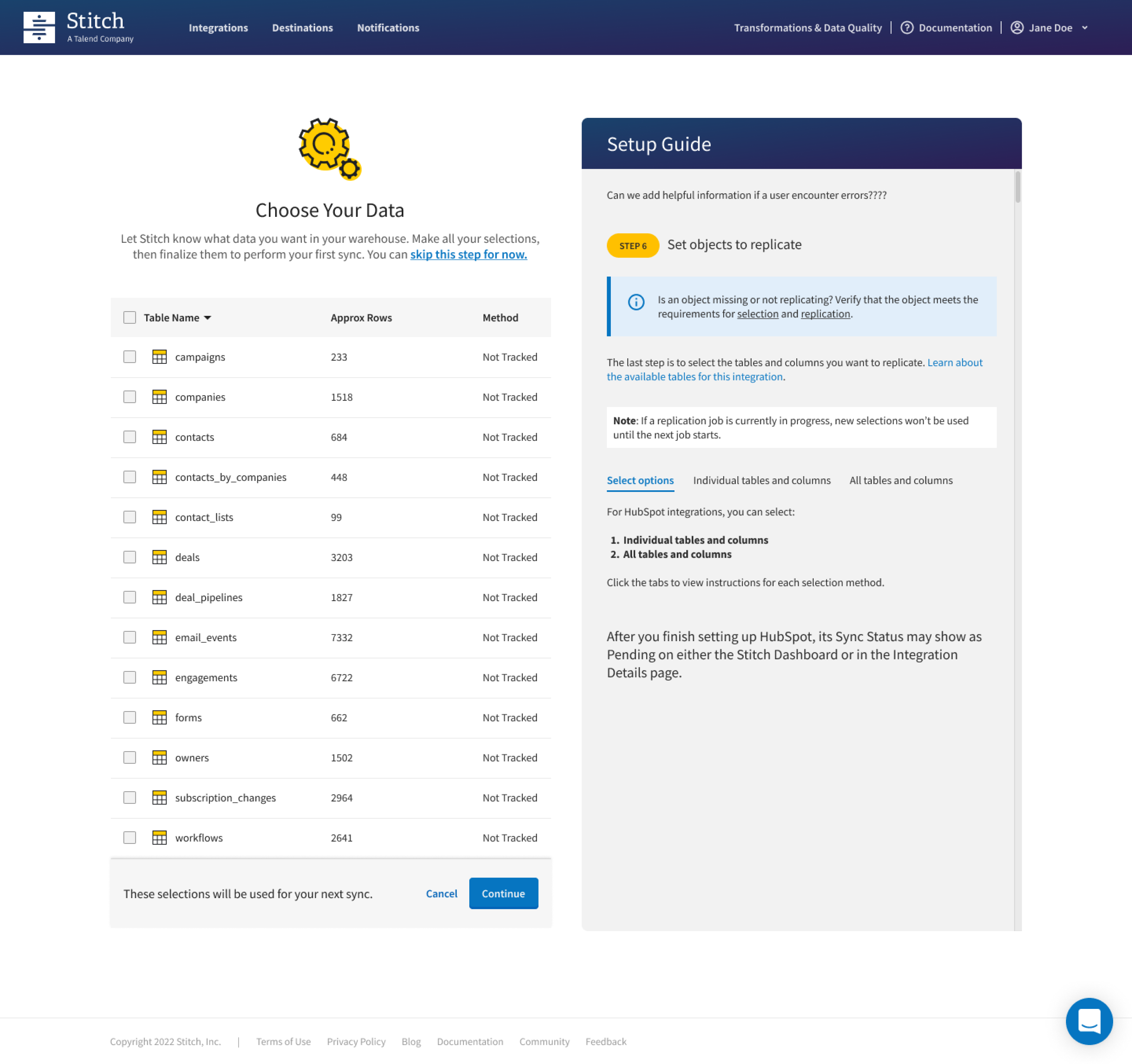 Regarding the setup guide, collaboration with the engineering team revealed a challenge related to the step where users select tables for replication. It was identified that this specific step was built using legacy Angular code, and there was a lack of expertise within the team to make necessary modifications. This limitation emerged as a blocker for the introduction of the setup guide at this particular step.